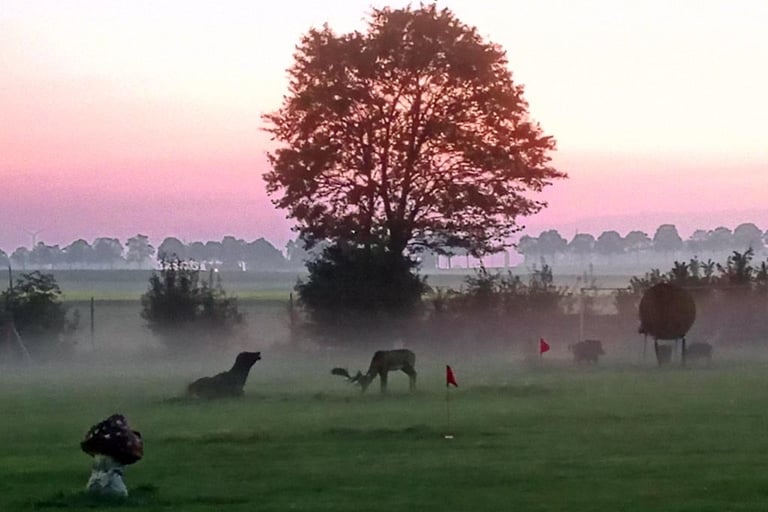 Ende September, Bodennebel zieht langsam auf, die 3D Tiere stehen auf der Wiese und sehen fast aus, als würden sie wirklich dort grasen. Ein faszinierender Anblick und es war wieder ein schöner Trainingstag mit unseren Mitgliedern der 3D Truppe.